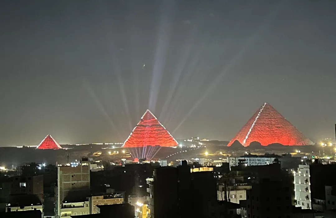 Giza Pyramids View Apartment consta de un balcón y una zona de estar con sofá, y comodidades modernas como TV por cable con películas a la carta y TV con canales por satélite. Junto con las vistas al jardín, los huéspedes también apreciarán ventanas insonorizadas, que realzan la experiencia global. El establecimiento cuenta con 2 dormitorios. Además, hay mantas eléctricas. Este apartamento está equipado con 1 cuarto de baño con ducha y una ducha. Además, encontrarás secador de pelo y toallas de baño.